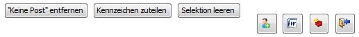 Sobald die Selektion der Adressen vollständig ist, können Sie diese Adressen weiter bearbeiten. Sie finden dazu mehrere Schalter am rechten, unteren Bildschirmrand.
