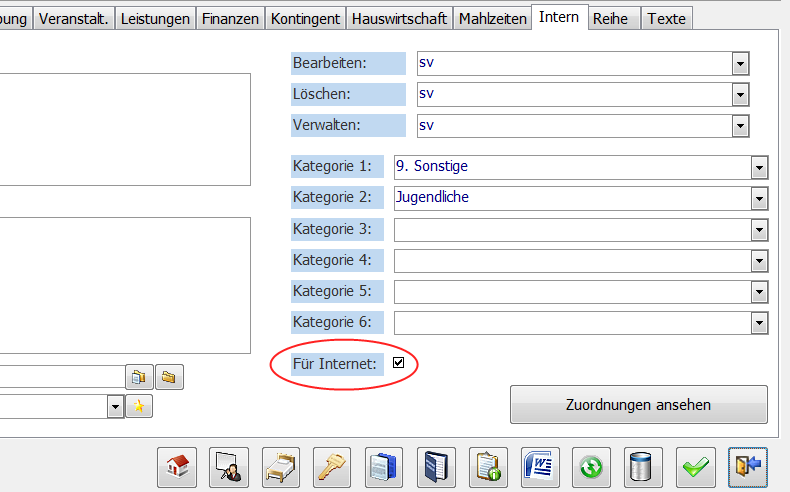 Sie finden das Häkchen „Internet“ im Seminar unter dem Karteireiter „Intern“. Entfernen Sie dieses Häkchen, wenn das Seminar nicht mehr online ausgeschrieben werden soll. Mit einem Klick auf den Schalter „Aktualisierung“ werden die online verfügbaren Seminare aktualisiert. Seminare, die das Häkchen „Für Internet“ nicht mehr haben, werden aus dem Online-System gelöscht.