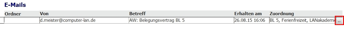 Wurde eine Zuordnung falsch gesetzt, so klicken Sie die entsprechende E-Mail-Zeile einfach an und klicken Sie dann auf den Schalter mit dem roten x (unten rechts).