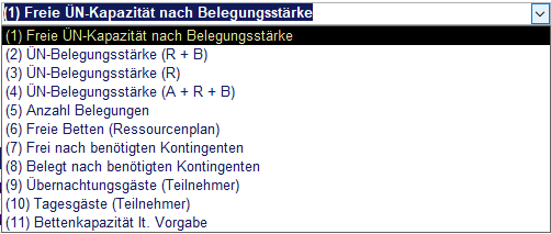 2. Ressourcenplan: Als Berechnungsgrundlage werden nur im Ressourcenplan zugeteilte Betten herangezogen. Die freien Betten ergeben sich als Differenz zwischen zugeteilten Betten und Bettenkapazität Ihrer Einrichtung. Aufenthalte ohne Bettenzuteilungen werden damit ignoriert.