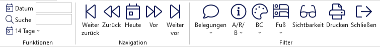Der Schalter mit dem Kalendersymbol öffnet die Ansicht für das heutige Datum und in dem Datumsfeld können Sie ein konkretes Datum angeben, um auf dieses zu navigieren.