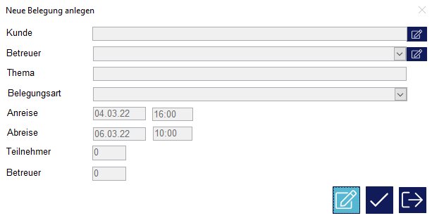 Nach dem Loslassen der Maustaste öffnet sich das Fenster „Neue Belegung anlegen“.