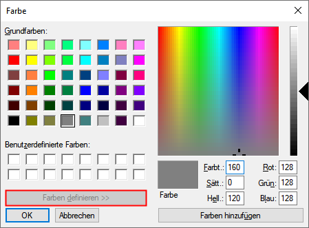 Legen Sie nun durch einen Klick auf den Plusschalter einen neuen Ressourcenstatus an. Die Anzahl der Einträge ist nicht begrenzt. Vergeben Sie für den Ressourcenstatus eine Kurzbezeichnung, eine Bezeichnung und eine Farbe. Um eine Farbe zuzuweisen, klicken Sie in der Spalte „Farbe“ auf den Farbschalter. Bestätigen Sie ihre Farbauswahl mit „OK“.
