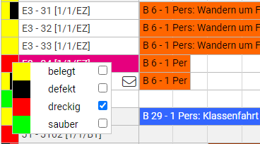 Den Ressourcen im Haus- und SeminarManager können verschiedene Ressourcenstatus zugewiesen werden. So wird im Programm abgebildet, ob ein Zimmer gereinigt werden muss, es sauber ist oder gerade renoviert wird. Ressourcenstatus können von Ihnen frei definiert werden. Sie sind über den Ressourcenplan und die Clean & Repair-App einsehbar. Mithilfe des Stapellaufs „Ressourcenstatus“ können zudem für Bleibe- bzw. Abreise-Zimmer die Ressourcenstatus automatisiert gesetzt werden.
