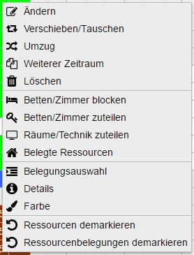 Über die Schnellbuchung werden keine Zusatzbetten zugeteilt. Außerdem wird bei der Zuteilung nach Geschlecht unterschieden. Sollten Sie doch Zusatzbetten zuteilen wollen, so können Sie nach Abschluss des Vorgangs auf eine Zimmerzuteilung rechtsklicken und weitere Betten zuteilen.