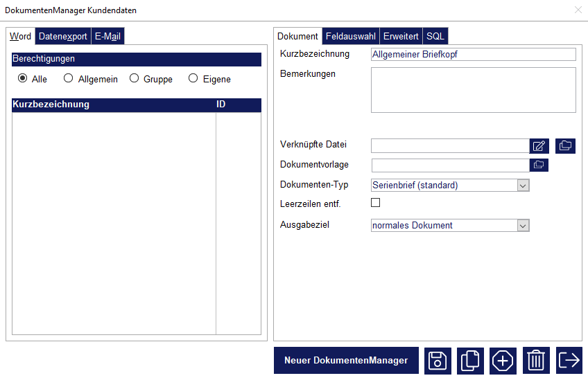 Zum klassischen DokumentenManager können viele, bereits fertige Vorlagen heruntergeladen und genutzt warden. Sie können das Gesamtpaket hier herunterladen.