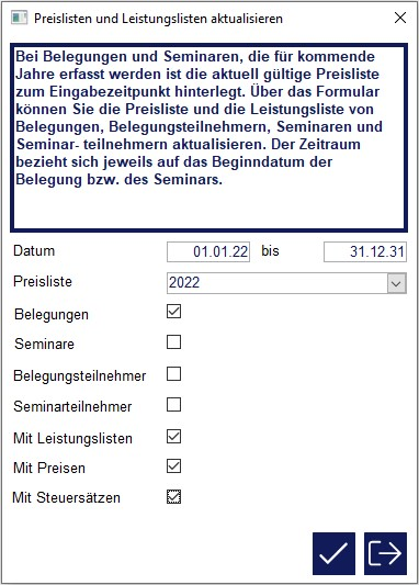 Aktualisierung der Preislisten#