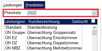 Nach Anlage einer neuen Preisliste werden alle Belegungen, die künftig angelegt werden, mit der neuen Preisliste ausgestattet (sofern die Belegungen in den entsprechenden Zeitraum fallen).