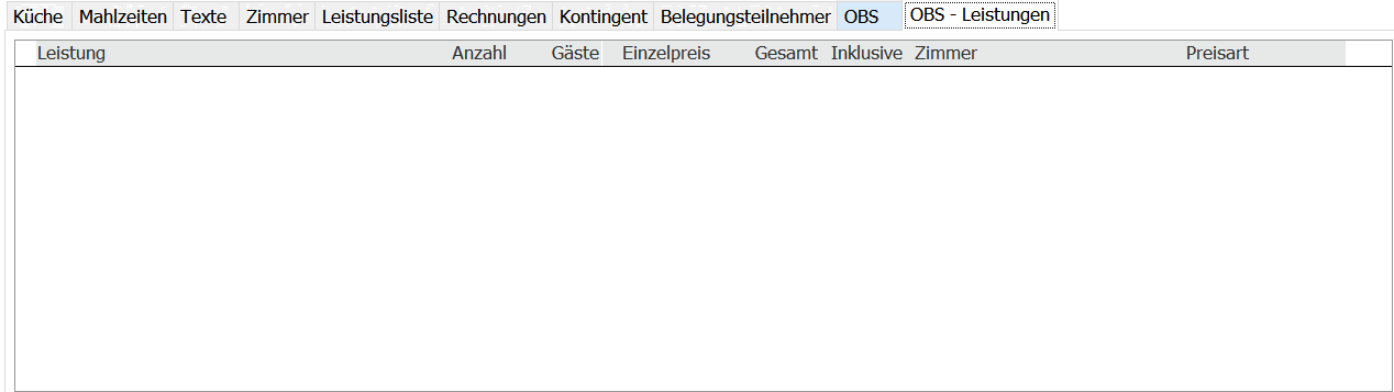 Unter Karteireiter „BPS – Leistungen“ finden Sie alle gebuchten Leistungen und die Zimmer, welche die jeweilige Leistung in Anspruch nehmen, aufgeführt.