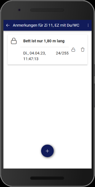Mithilfe der Clean & Repair-App können Sie ihr Reinigungspersonal bequem über die zu reinigenden Zimmer und Räume ihrer Einrichtung informieren. Das Reinigungspersonal wiederum kann den Status eines gereinigten Zimmers mithilfe der App auf z. B. „Sauber“ setzen. Der geänderte Status wird anschließend in den Ressourcenplan übertragen, sodass Sie immer über den aktuellen Stand ihrer Zimmer informiert sind.